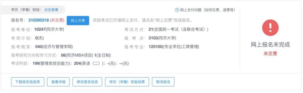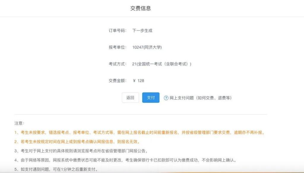 同济大学报考点(考点代码3103)须在全国硕士研究生招生考试网上报名平台进行网上缴费。