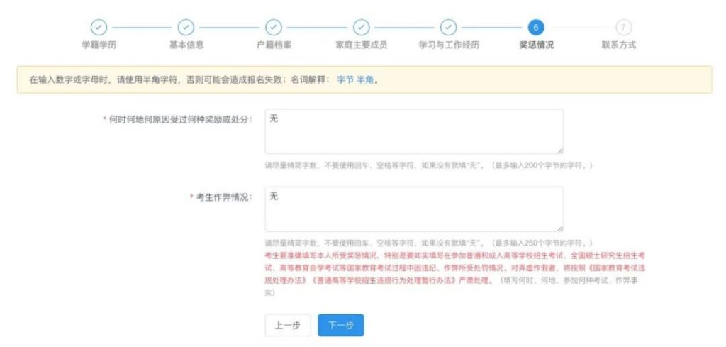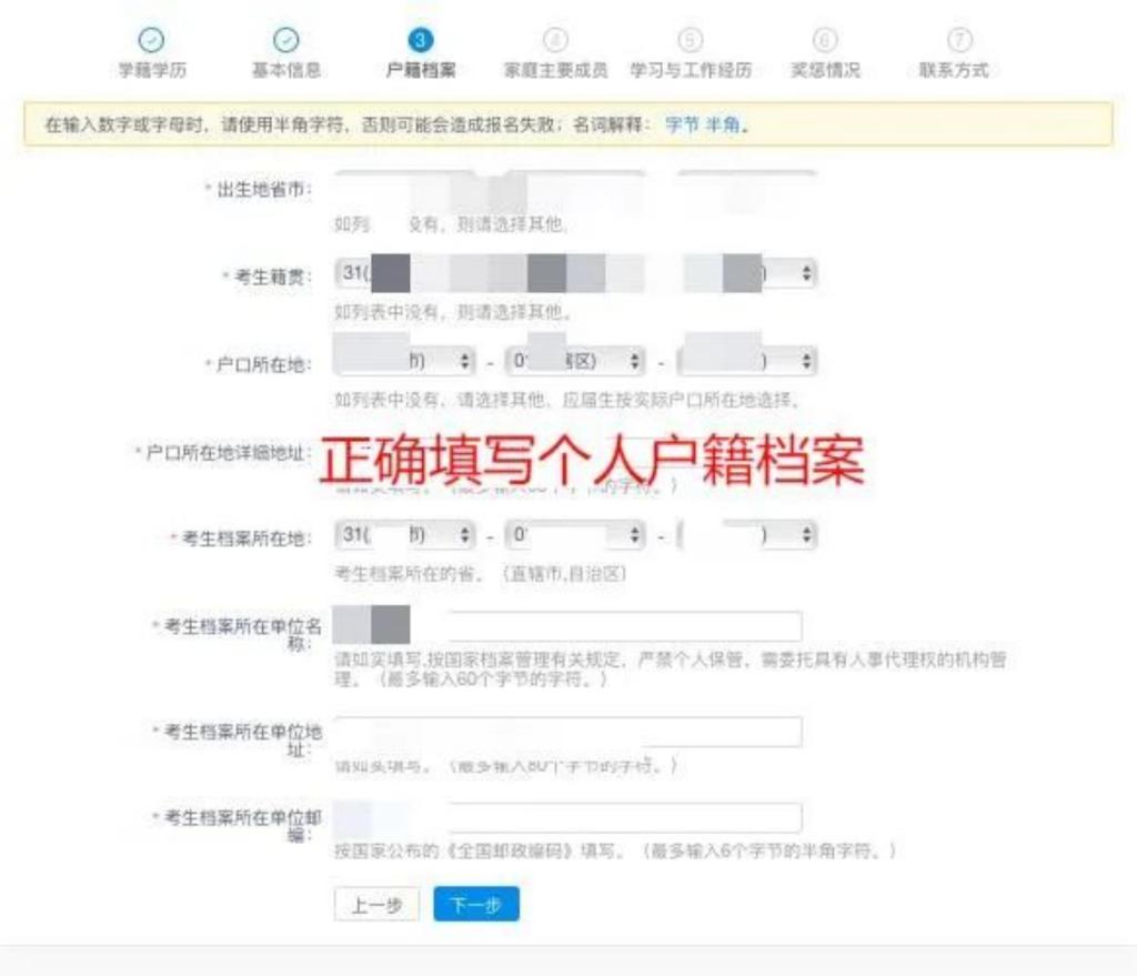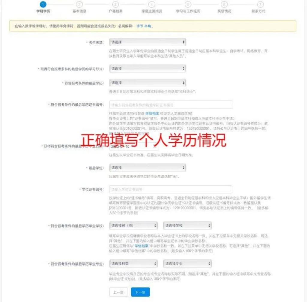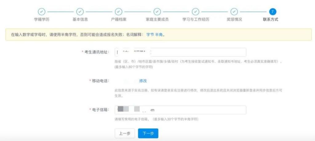 务必填完考生信息栏所有步骤,