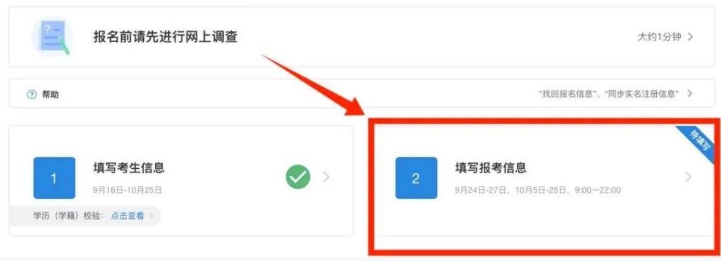 完成考生信息填写后,点击填写报考信息