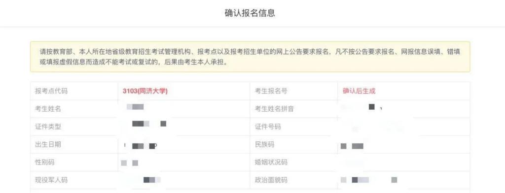 同济大学报考点(考点代码3103):网上确认时间待定,具体安排以网报期间同济研招网和同济研招微信号公布的考点确认公告为准。逾期不再补办。