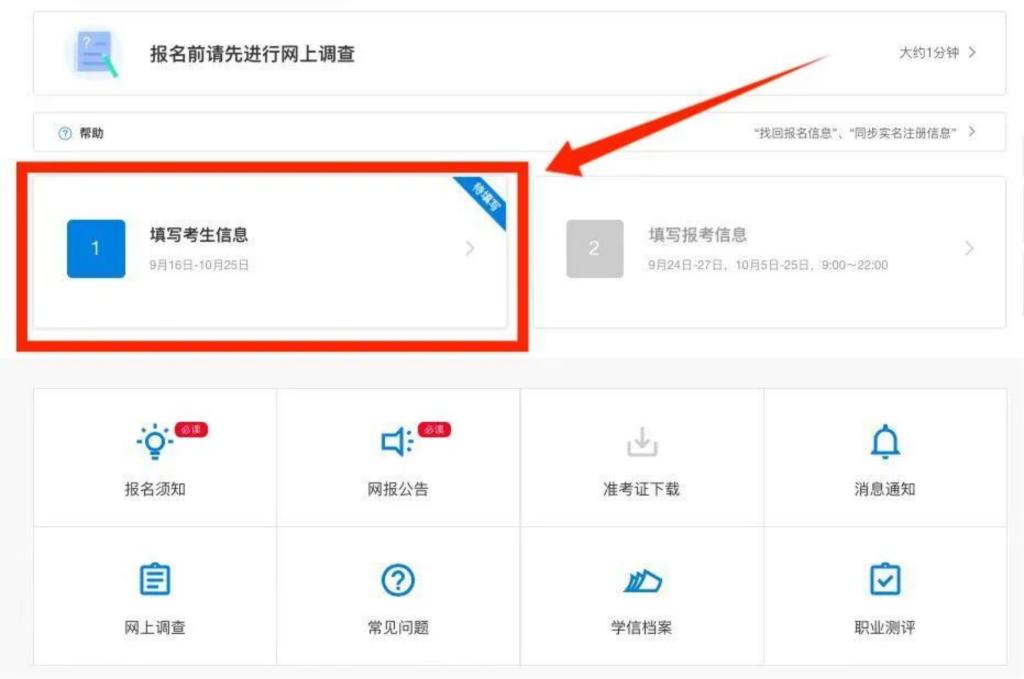 点击填写考生信息