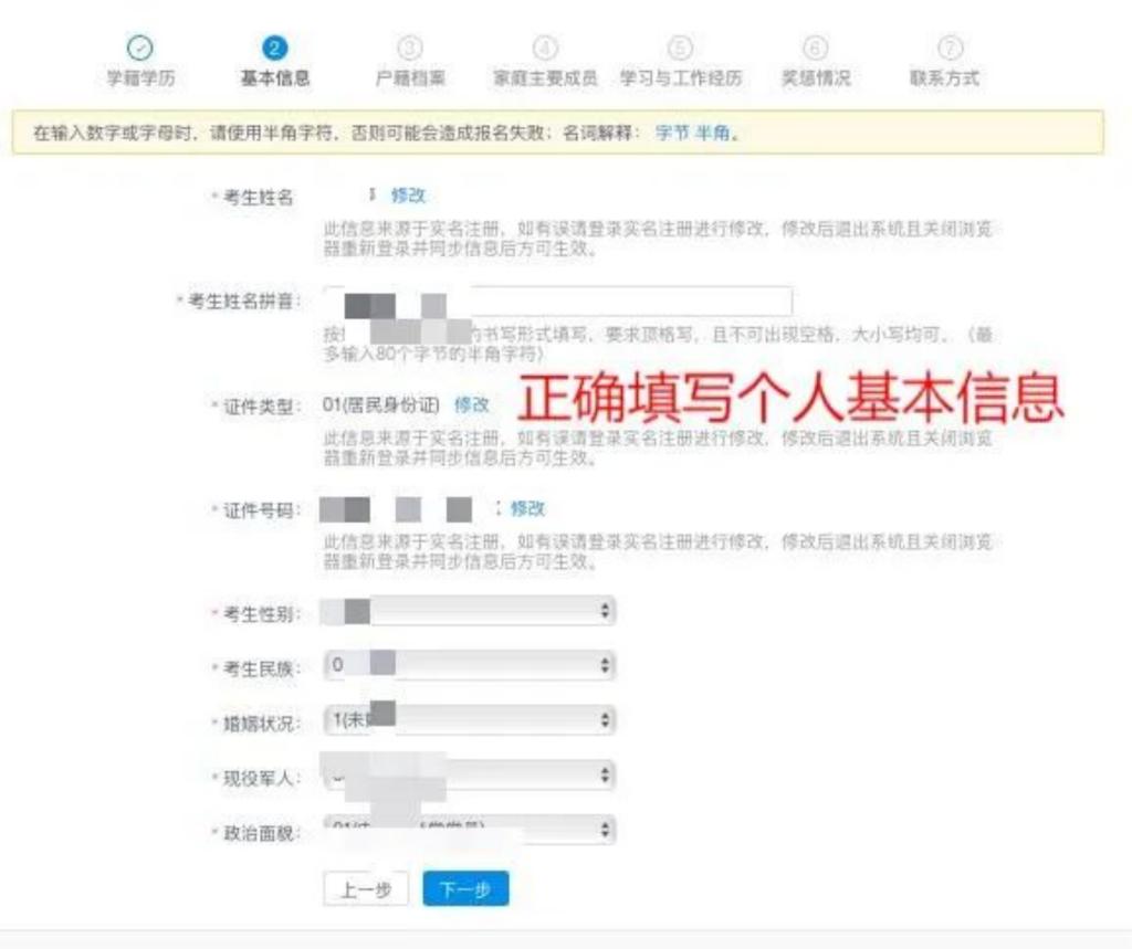 信息有误将影响报名!