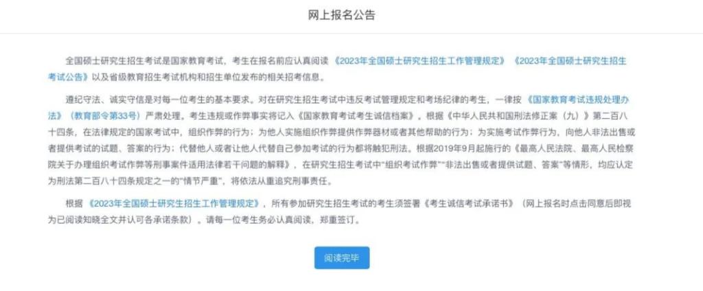 阅读网报公告、诚信考试承诺书并再次确认个人信息