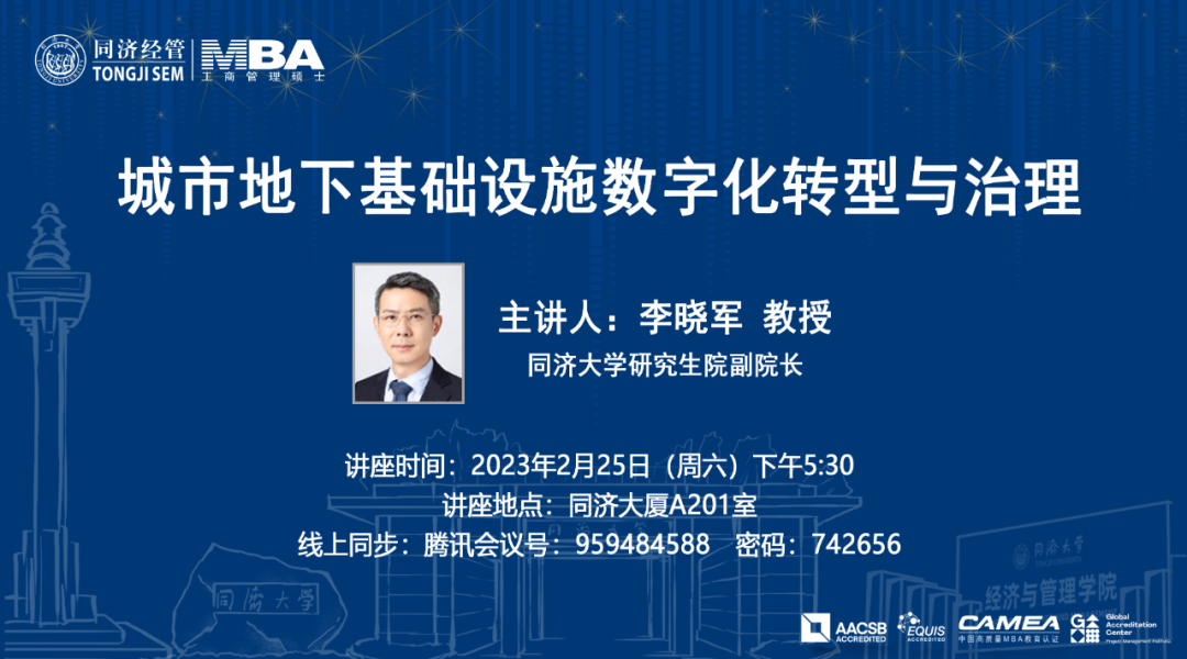 【讲座预告 | 同济MBA】同济大学研究生院副院长李晓军:城市地下基础设施数字化转型与治理