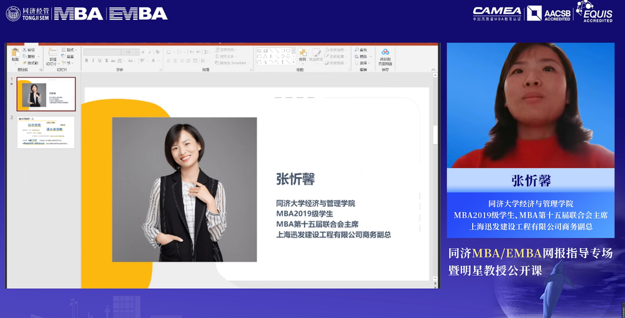 同济大学经济与管理学院2019级MBA学生、MBA第十五届联合会主席、