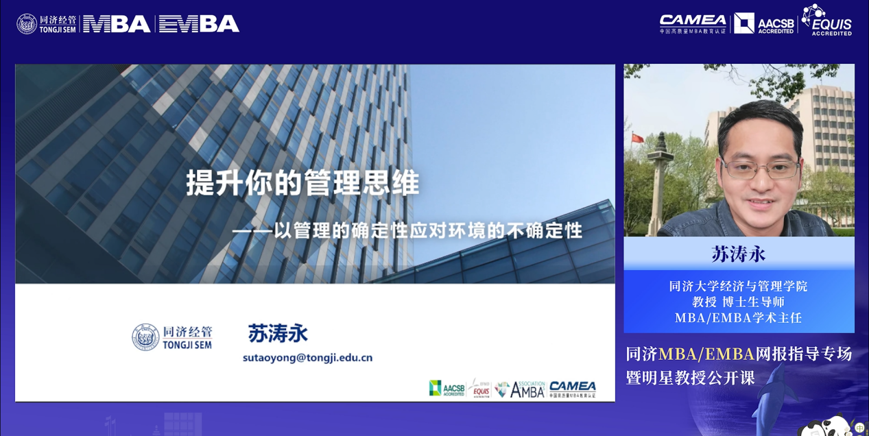 同济大学经济与管理学院MBA/EMBA学术主任苏涛永教授