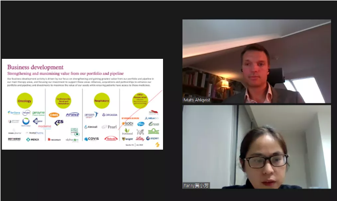 提问环节,主持人黄小芳老师代表广大学员提出比较关心的话题——阿斯利康作为全球重量级参与新冠疫苗研发的企业,如何预测疫情防控问题。Matti Ahlqvist总监从各国的环境、人们的认知、对于疫情的重视程度等几个不同维度进行了客观分析,并给予了相应的回复。